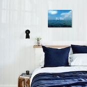 壁に飾るだけで、鮮やかなブルーがお部屋に海の風、開放感を与えてくれる一枚。
